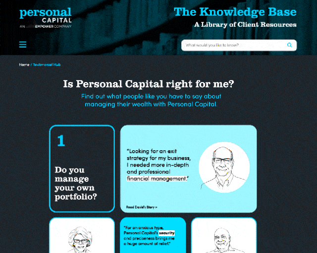 We drove interested viewers to an interactive hub of relatable stories from people who were once in their exact situation. Where other financial service firms will tell you all about how they are fiduciaries with their clients’ best interests at heart, we more than proved it by letting the people whose lives we’ve changed speak for themselves.
